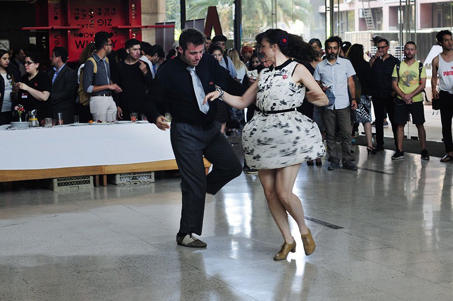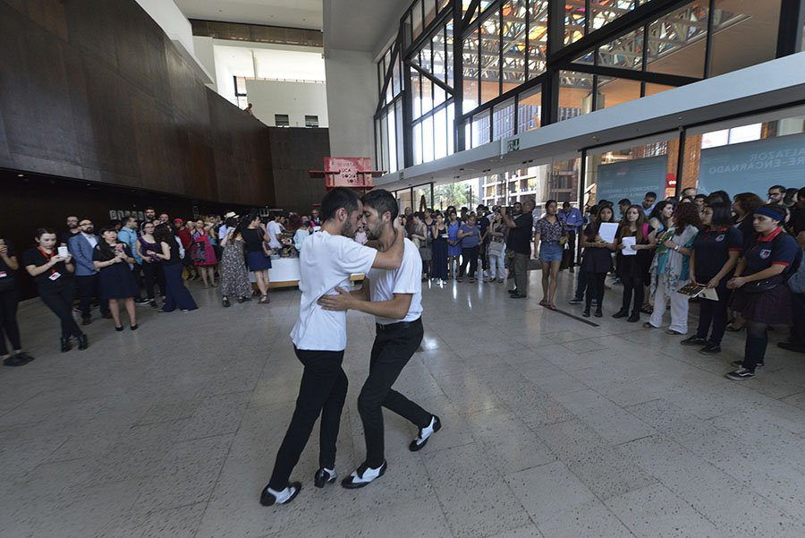El grupo de baile Wolfpack abrió con street dance el lanzamiento de la programación 2017. La agrupación, liderada por Aron Lobos, es una de las muchas comunidades que ocupan los espacios abiertos del edificio durante todo el año. Además del clásico k-pop, hay exponentes de otros bailes urbanos y latinos, como salsa, lindy hop, dance hall, hip hop y también músicos y dibujantes. Ellos son la mejor prueba de que no sólo se vive dentro de las salas, si no que en los espacios públicos y son parte de las 1.097.815 visitas que recibió el edificio desde enero hasta octubre de este año. Son sus experiencias las que están tras el cómico video protagonizado por Nona Fernández vestida de monja, presentado en el lanzamiento, y que dan la consigna del 2017: Sagradamente estamos todos.