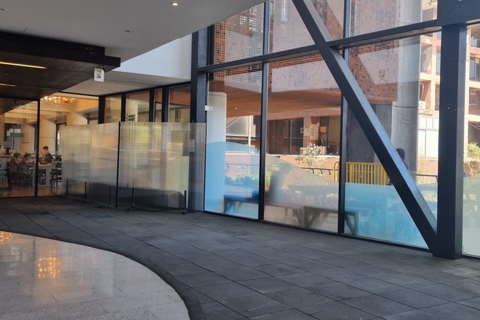 El Foyer Oriente (Hall Edificio B) está ubicado en el edificio B, primer piso, cercano a la Boletería y a la Librería de GAM.