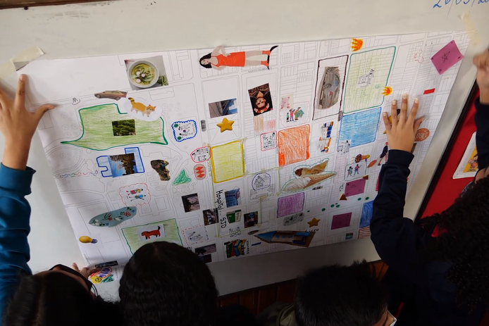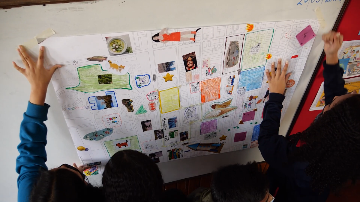 Por medio de metodologías participativas como recorridos por sus barrios, conversaciones entre pares y cartografías colectivas, se elaboraron postales con fotografías tomadas por los mismos estudiantes y con reflexiones, propuestas e inquietudes que escribieron desde su perspectiva y realidad.