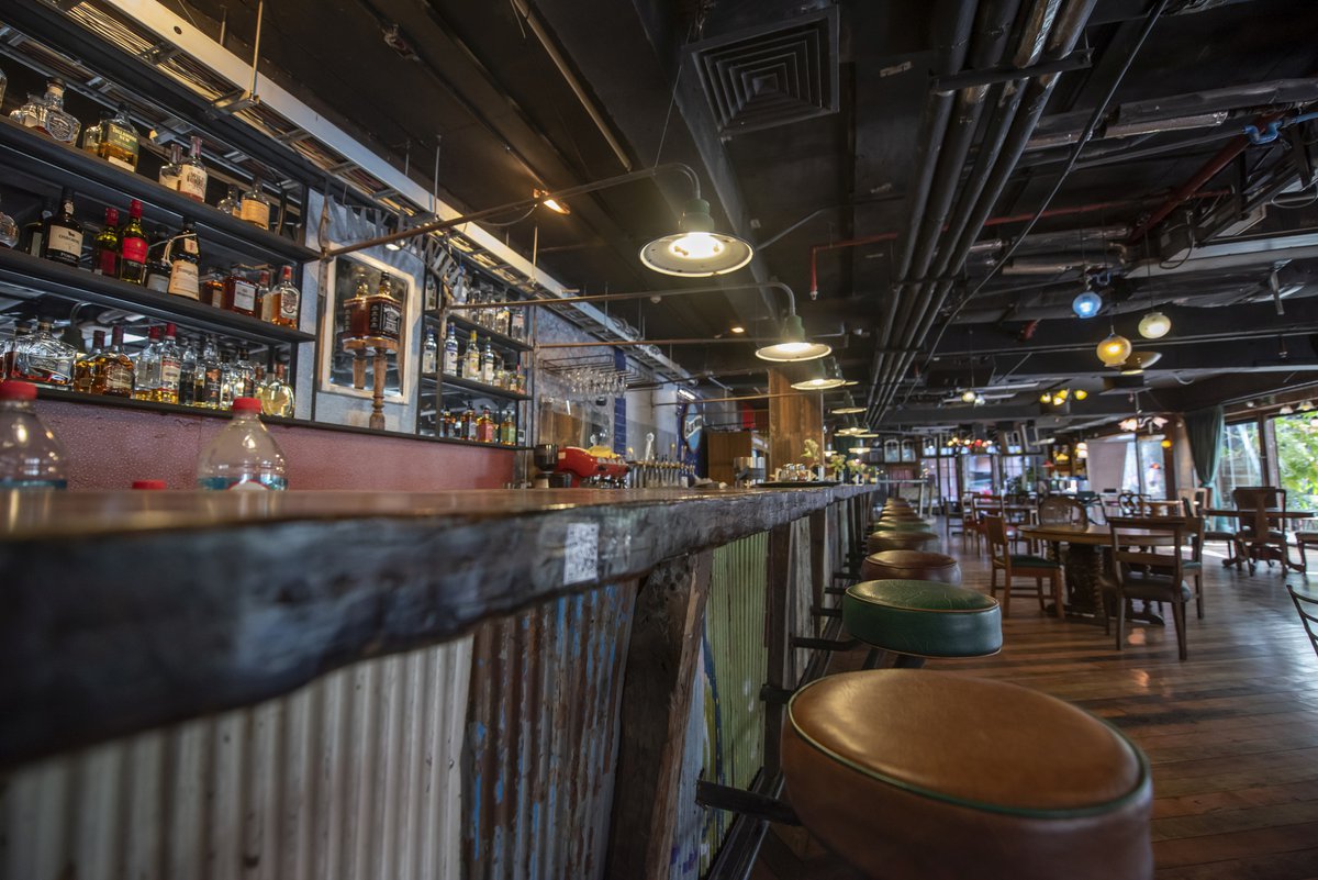 Bar El Bajo cierra la trilogía que comenzó La Jardín en Factoría Italia y continuó La Diana en el antiguo claustro de Los Sacramentinos. Parte de los materiales y plantas de esos restaurantes son reutilizados en este bar inaugurado en diciembre de 2020.