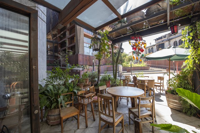 Un espacio de 600 m2 con una gran barra, escenario para programación artística, terraza abierta a Plaza Zócalo y muchas muchas plantas. Este bar de vocación multifuncional y masiva ofrece una carta pensada para compartir, con variedad de cervezas, picoteos, pizzas y platos.