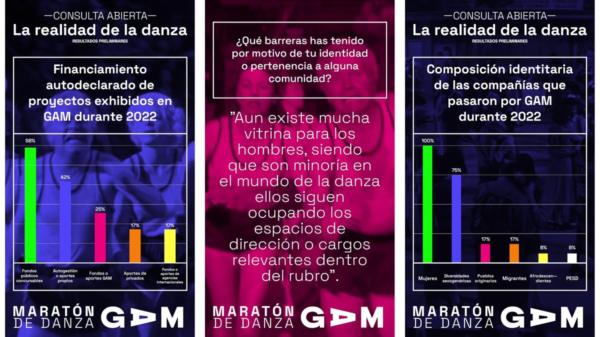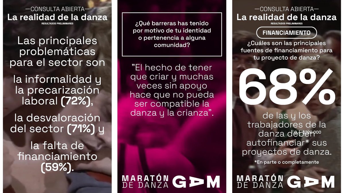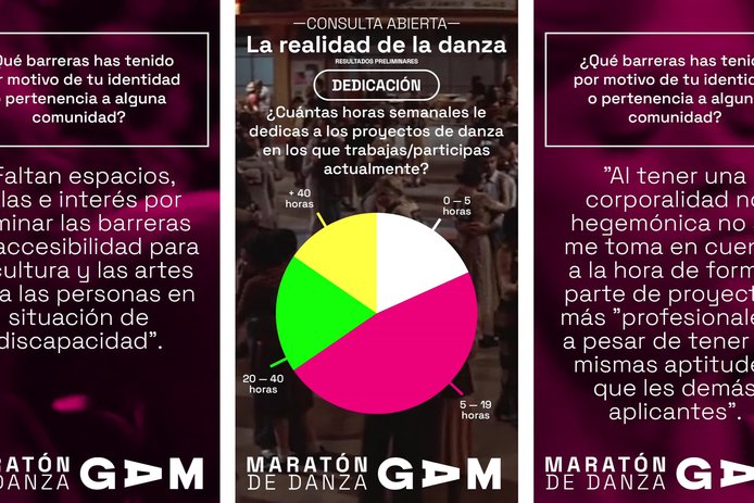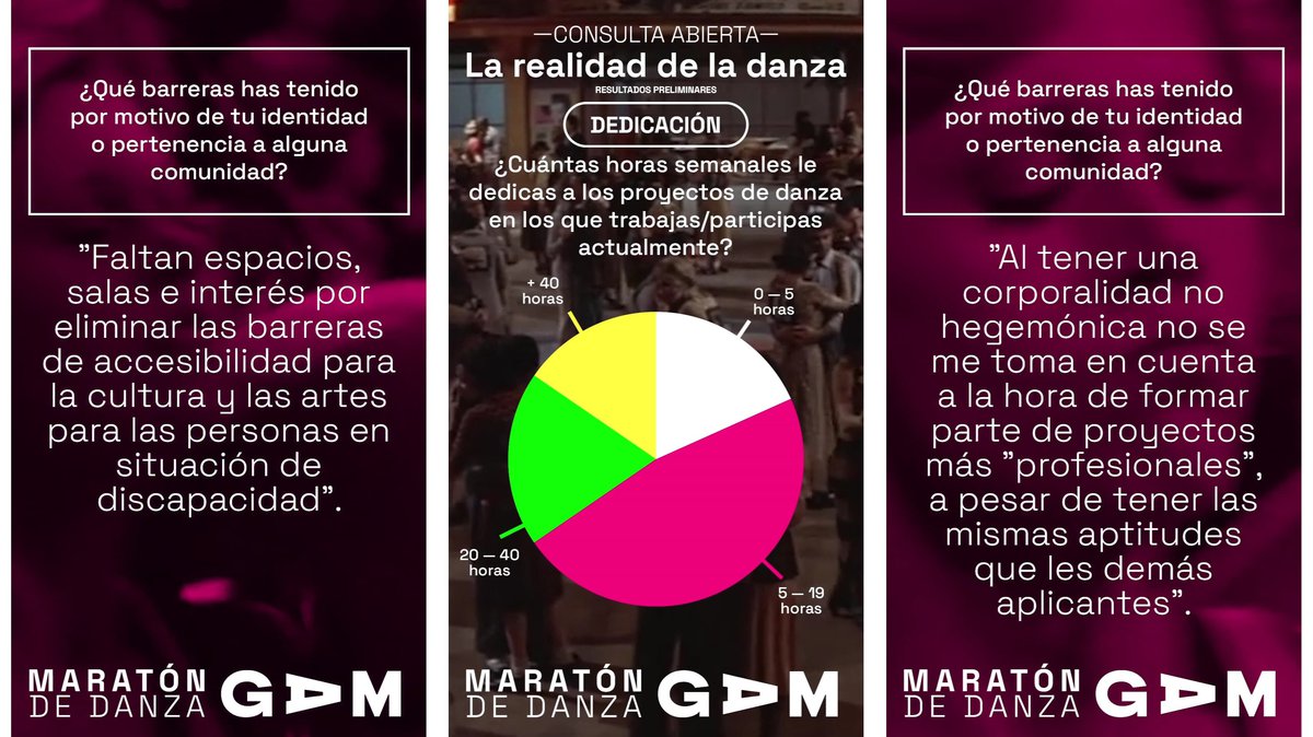 En total se recibieron 174 respuestas que se exhibieron durante la Maratón de Danza, que reunió a 300 personas. Conoce los resultados en este informe.