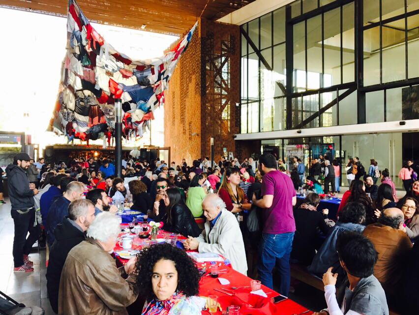 Recetas y sabores de los años 70 fueron preparados por el colectivo porteño Teatro Container, junto a personas y artistas que fueron regulares visitantes del edificio UNCTAD III. Salpicón, porotos con longaniza y peras al vino fue el menú que sorprendió los asistentes que llegaron desde las 13 horas al GAM para disfrutar de esta comida comunitaria en forma gratuita.
