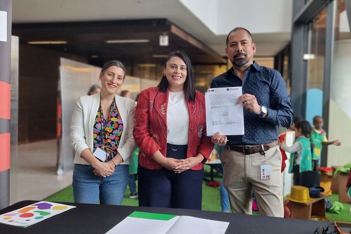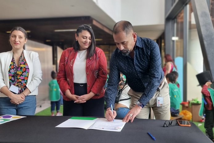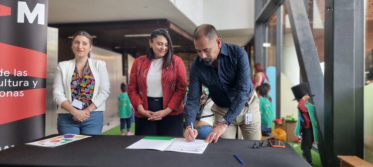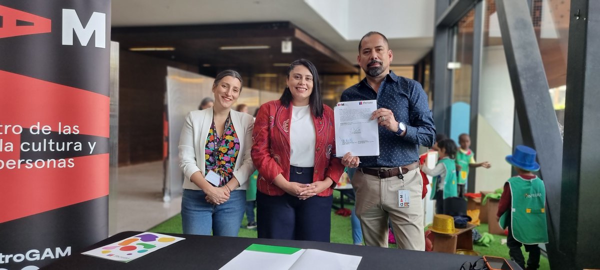 Con la presencia de niñas y niños del Jardín Infantil Agualuna de Quinta Normal, GAM y Fundación Integra, firmaron un convenio de colaboración para fomentar el acceso a las actividades culturales que fortalezcan la experiencia de los niños y niñas y trabajadores de la Fundación.
