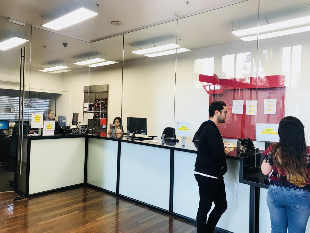 El mesón de informaciones tradicional, que ocupaba dominaba el hall del edificio B, se trasladó a una nueva y ampliada boletería. Allí se aumentó el espacio de trabajo agregando una superficie útil interior de 10 m2, lo que posibilitó incorporar un espacio rebajado para acoger a personas en sillas de ruedas.