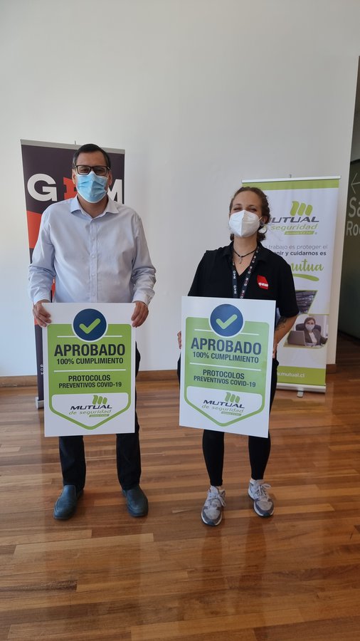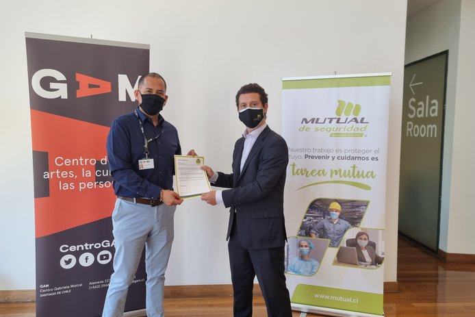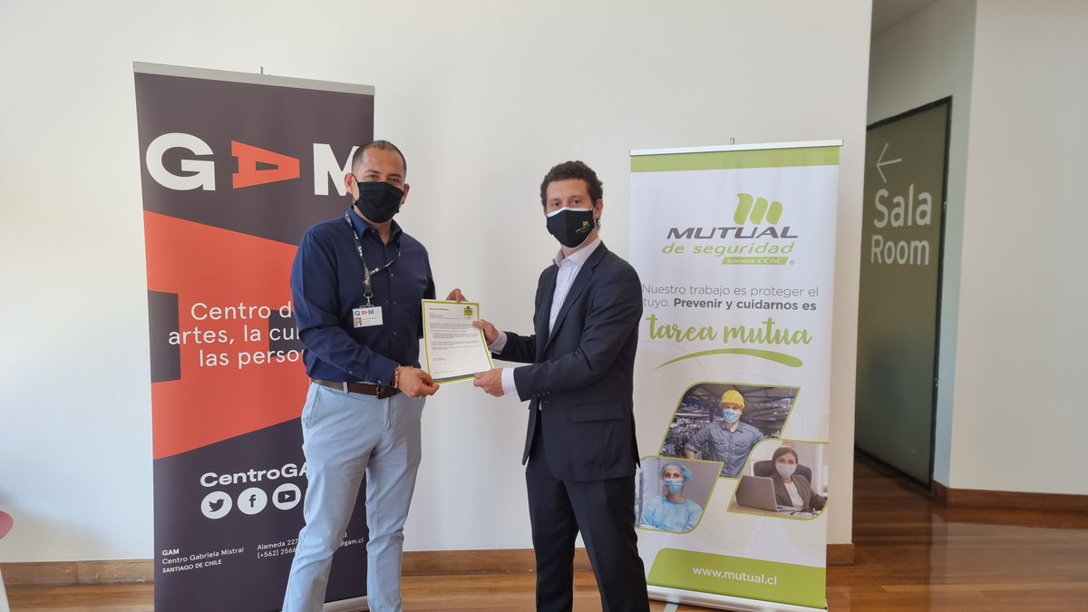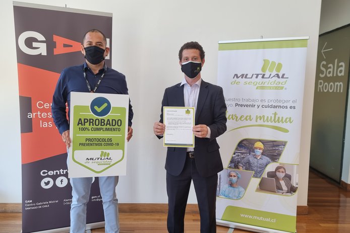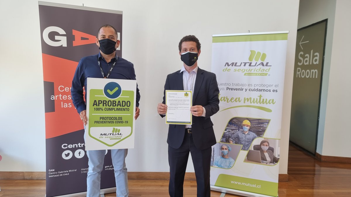 Este miércoles 17 de noviembre, recibimos por parte de la Mutual de Seguridad, la certificación de Sello Covid-19, que acredita que se han implementado todas las medidas, recomendaciones y normativas establecidas por la Autoridad Sanitaria para prevenir el contagio de Coronavirus. En la ceremonia que se realizó en BiblioGAM, estuvieron presentes Felipe Mella, director ejecutivo de GAM y Gianfranco Calcagno, gerente de clientes de la Mutual, junto a trabajadores de ambas instituciones.