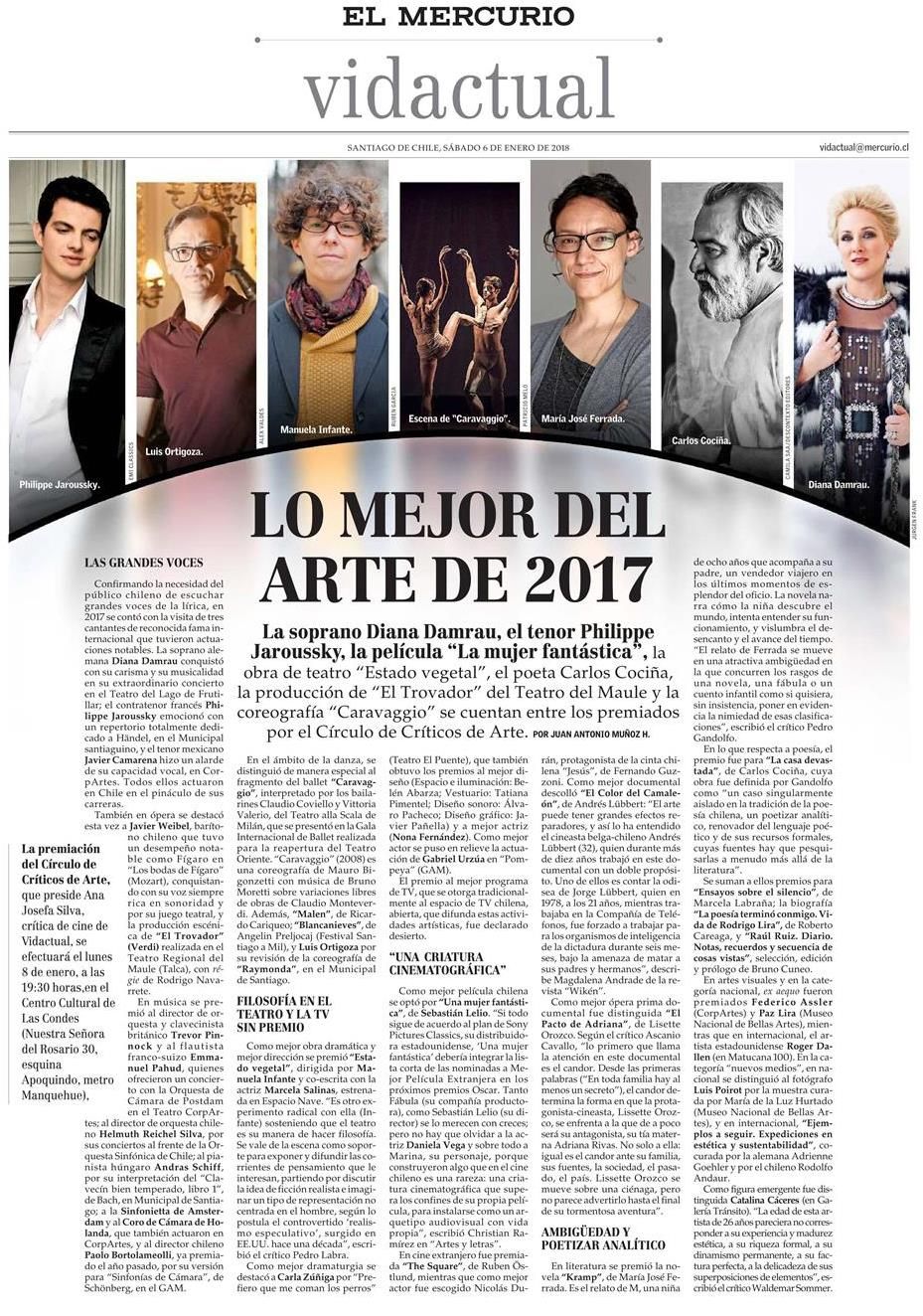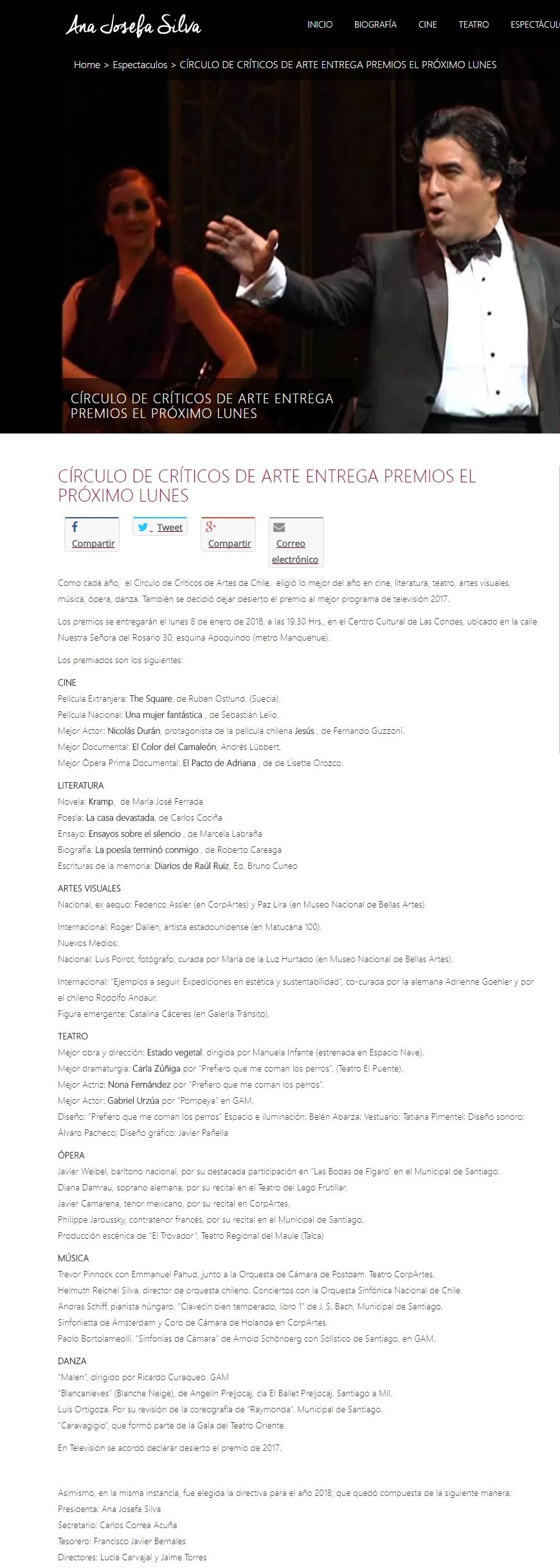 Los premios se entregaron el lunes 8 de enero de 2018, en el Centro Cultural de Las Condes y GAM tuvo especial reconocimiento con alguno de los montajes programados en sus salas el año pasado.