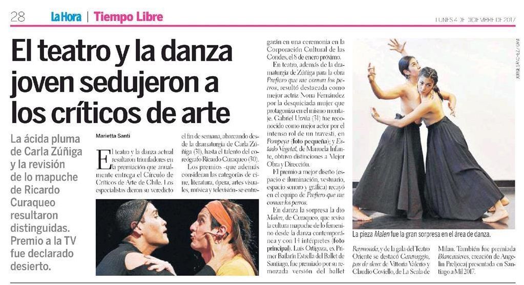 En DANZA, fue reconocida la ópera prima de Ricardo Curaqueo, Malen, estrenada en octubre en las salas de GAM.