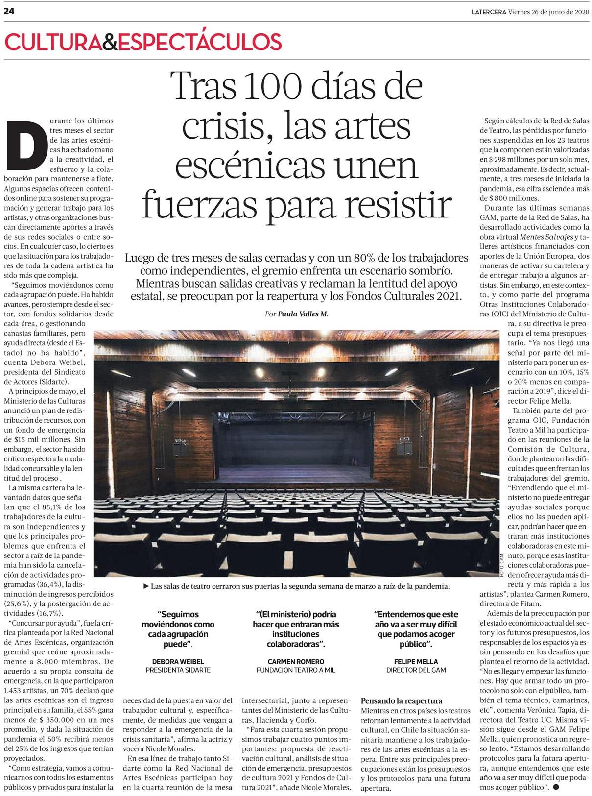 “GAM genera contenidos de artes escénicas en diversos formatos para sortear barreras de acceso y democratizar la cultura. En estos momentos de pandemia lo estamos haciendo con más fuerza y hemos buscado alternativas de contenidos especializados, sin dejar de lado a nuestros principales colaboradores: los artistas. Estamos muy agradecidos con la Unión Europea que apoya al sector cultural con una mirada solidaria y comprometida con los artistas”, afirma el director ejecutivo de GAM, Felipe Mella.