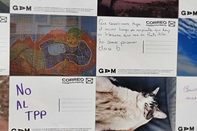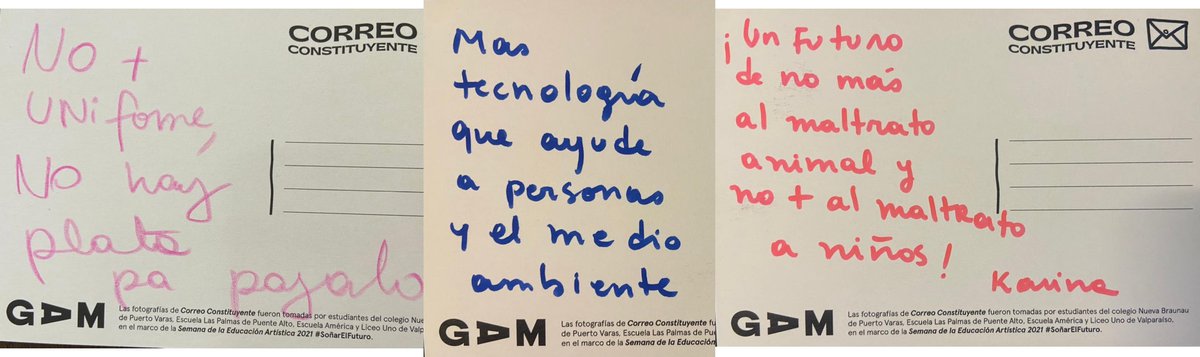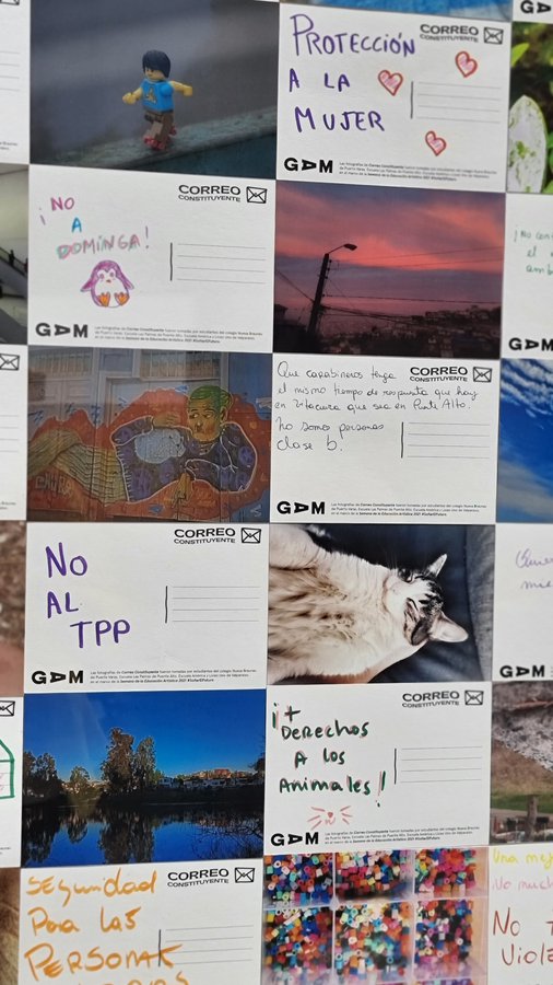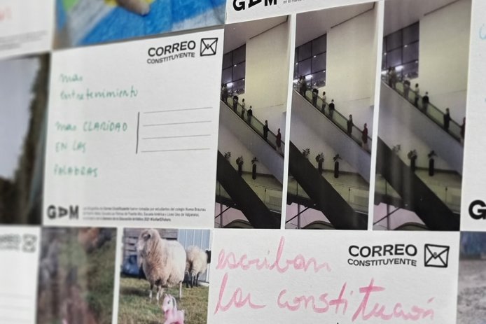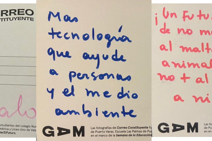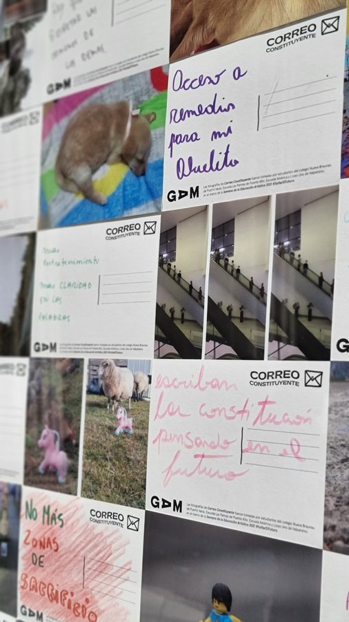 En colaboración con los constituyentes Ignacio Achurra y Malucha Pinto, GAM exhibe en la convención constituyente el trabajo artístico realizado por 160 niños y niñas sobre temas que les inquietan para la nueva carta fundamental. “Correo constituyente” es un trabajo de arte postal realizado en cuatro colegios públicos donde los estudiantes pudieron expresar sus peticiones para un nuevo Chile.