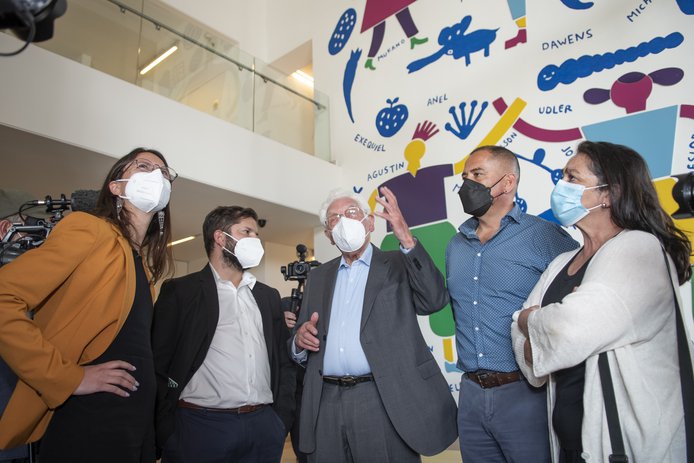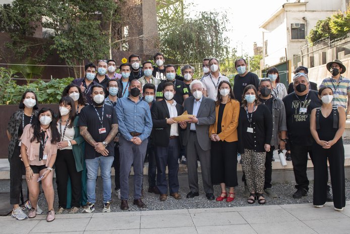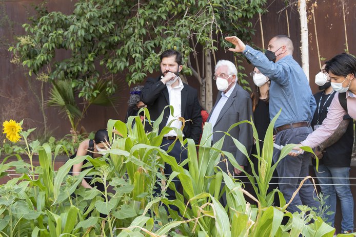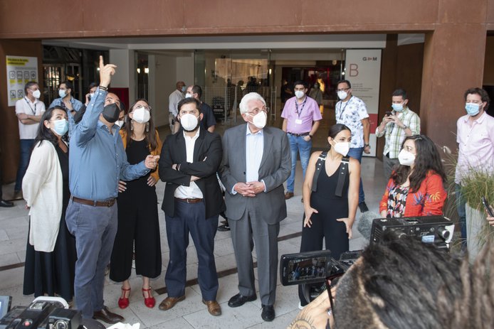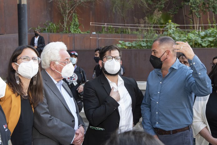 El director ejecutivo de GAM, Felipe Mella, lo recibió en plaza central junto a la Alcaldesa de Santiago, Irací Hassler. Acompañaron el recorrido además, el arquitecto y Premio Nacional Miguel Lawner, y miembros del directorio de la institución, como Carolina Arredondo y Nury González.