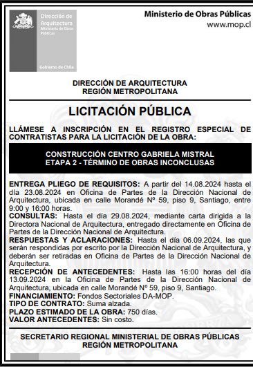 “Nuestro compromiso es en los próximos días dar inicio al libro de registro especial de empresas para llamar a licitación en noviembre y con ello reiniciar las obras de esta segunda etapa del GAM durante el próximo año”, informó la ministra de Obras Públicas, Jessica López, sobre el proyecto que tiene como objetivo retomar y concluir las obras abandonadas el año 2018 y que cuentan con el 45% de su infraestructura construida. La noticia fue entregada durante una visita inspectiva que realizó la mañana del pasado miércoles 7 de agosto la ministra Jessica López junto a la ministra de las Culturas, las Artes y el Patrimonio, Carolina Arredondo; la presidenta del directorio del GAM, Claudia Barattini; el director ejecutivo del GAM, Felipe Mella; y el subdirector de la Dirección de Arquitectura MOP, Martín Urrutia.