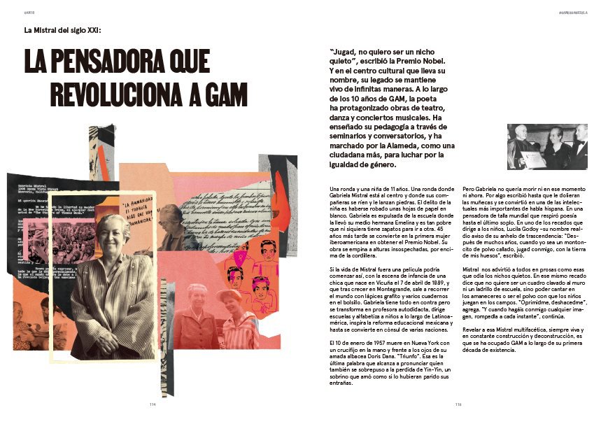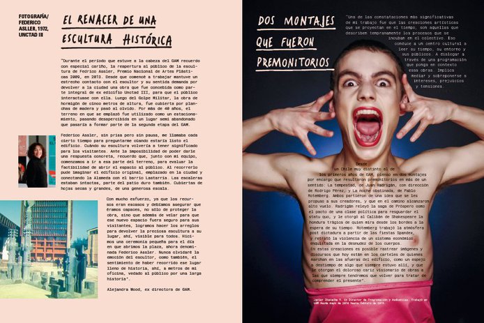 A través de sus páginas, se hace un recorrido por la historia del edificio, el significado social que ha tenido y su diálogo con la ciudadanía. Este trabajo es el resultado de una investigación por los períodos menos estudiados —como cuando fue Diego Portales—, tiene anécdotas inéditas de cuando fue Centro Metropolitano Gabriela Mistral y sabrosos detalles de todas sus etapas, incluidas las de GAM, que no se habían publicado. Respecto al periodo más reciente, los reportajes develan el pulso cultural, artístico y ciudadano de los últimos 10 años. El libro inaugura, junto a la Colección de dramaturgias, el sello Ediciones GAM con el que se busca aportar contenidos que contextualicen y vinculen la labor artística con públicos diversos.