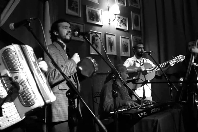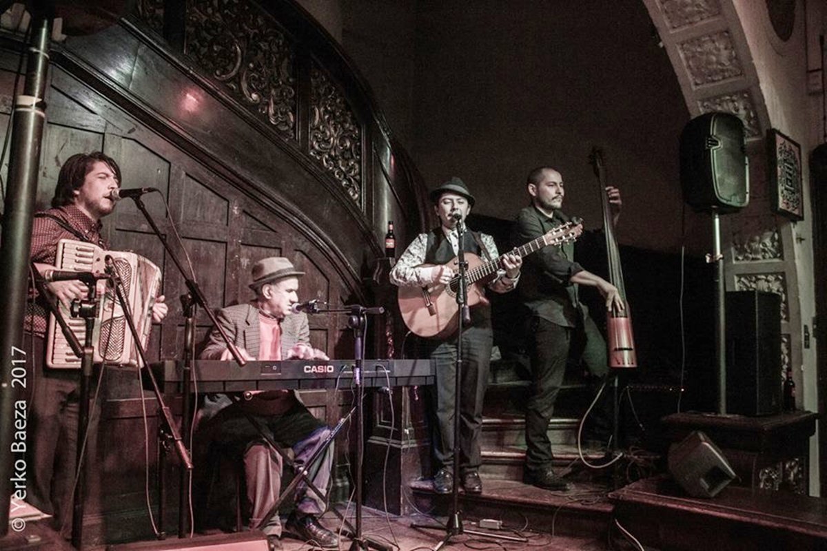 Cinco jóvenes músicos se unen con Aladín Reyes Aburto, pianista, acordeonista y cantor con más de 50 años, para crear sonidos del vals, tonada, tango, bolero y especialmente cueca chilena.