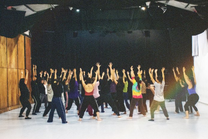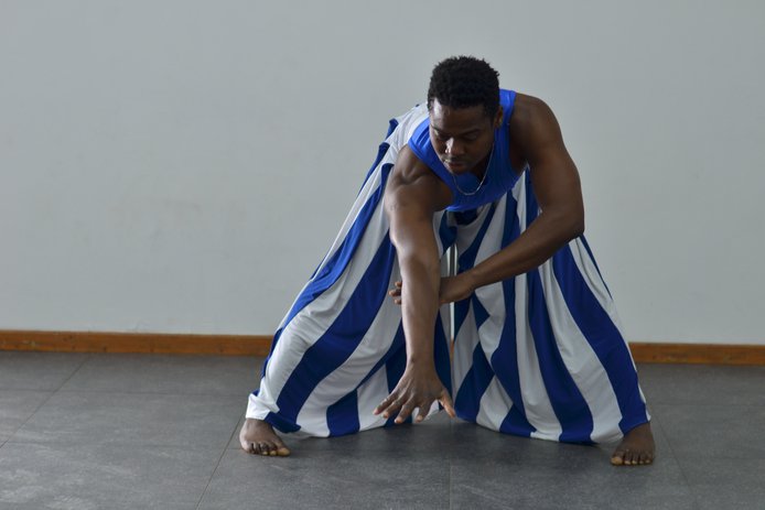 Clase de danza afro jazz contemporánea impartida por Evens Clercema, bailarín y coreógrafo haitiano que ha enfocado su trabajo en danzas afro haitianas y jazz contemporáneas.