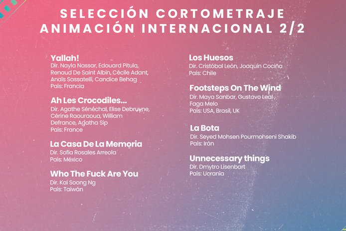 La versión 2022 se realizará del 11 al 19 de febrero en GAM en formato digital, para la competencia que incluye la categoría de cortos de Animación Internacional, donde destaca la exhibición del filme chileno nominado al Oscar, Bestia, de Hugo Covarrubias.