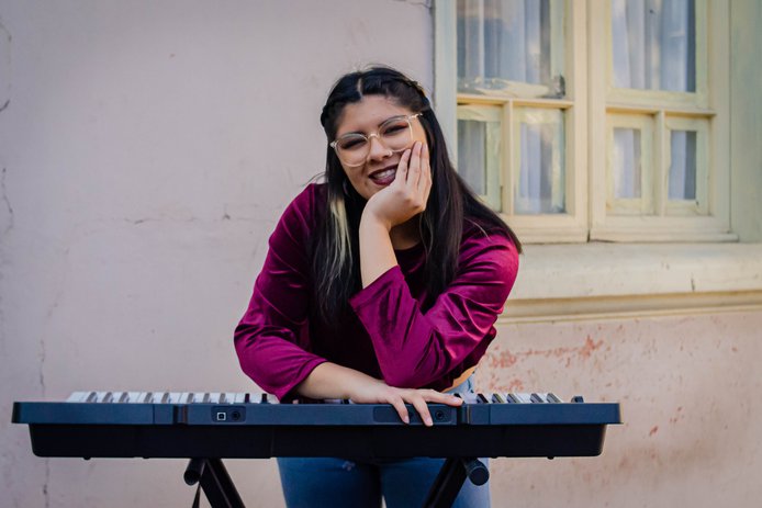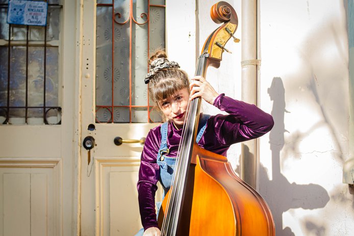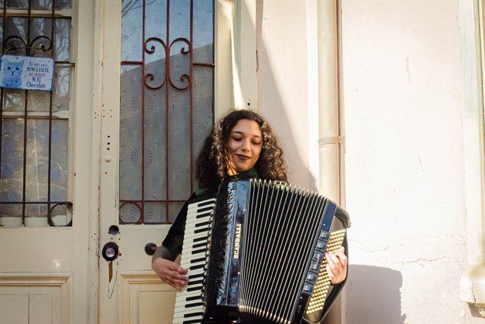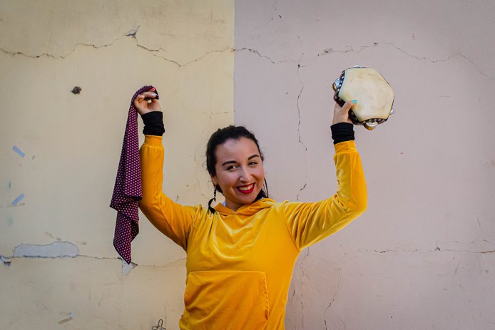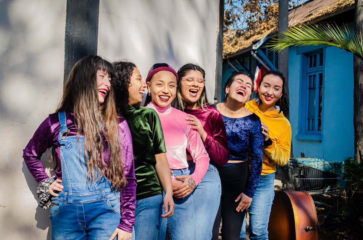 Koleth Alegría/ contrabajo y voz Sacky Conejeros/ Piano y voz Zofia Varas/ Guitarra y voz Danae Taís/ Acordeón y voz María Catalina Jara/ Pandero, actriz y voz Tam/ Percusión y voz