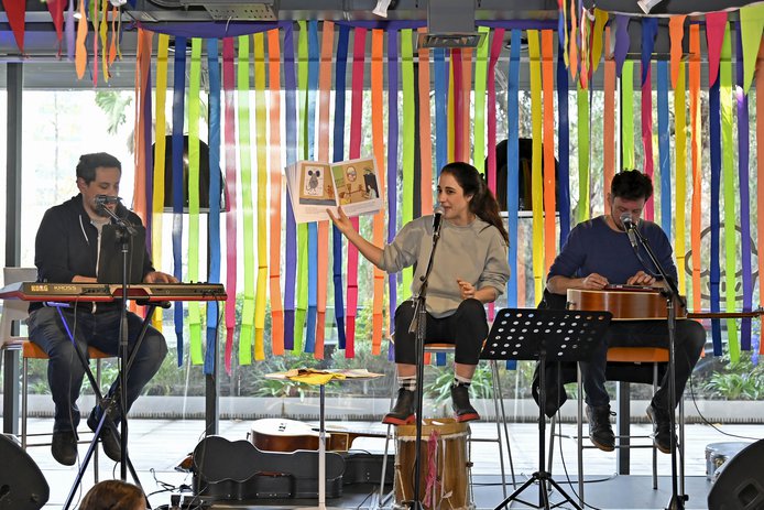La actriz junto a sus músicos nos cuentan maravillosas historias y nos cantan divertidas y populares canciones para infancias de todas las edades.