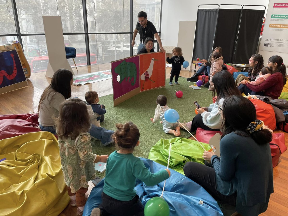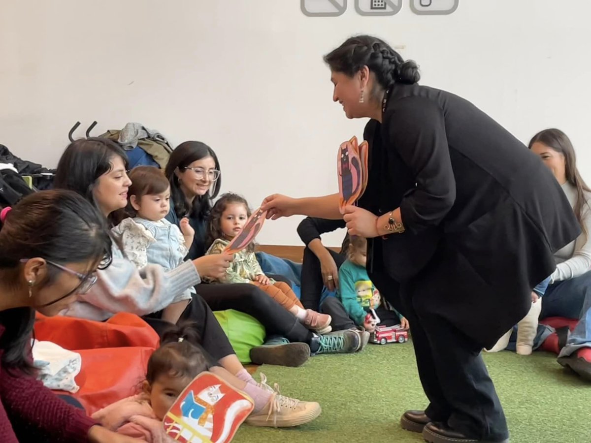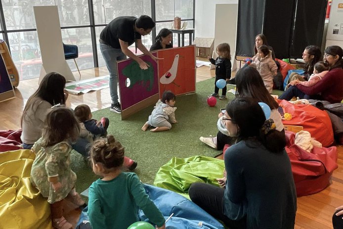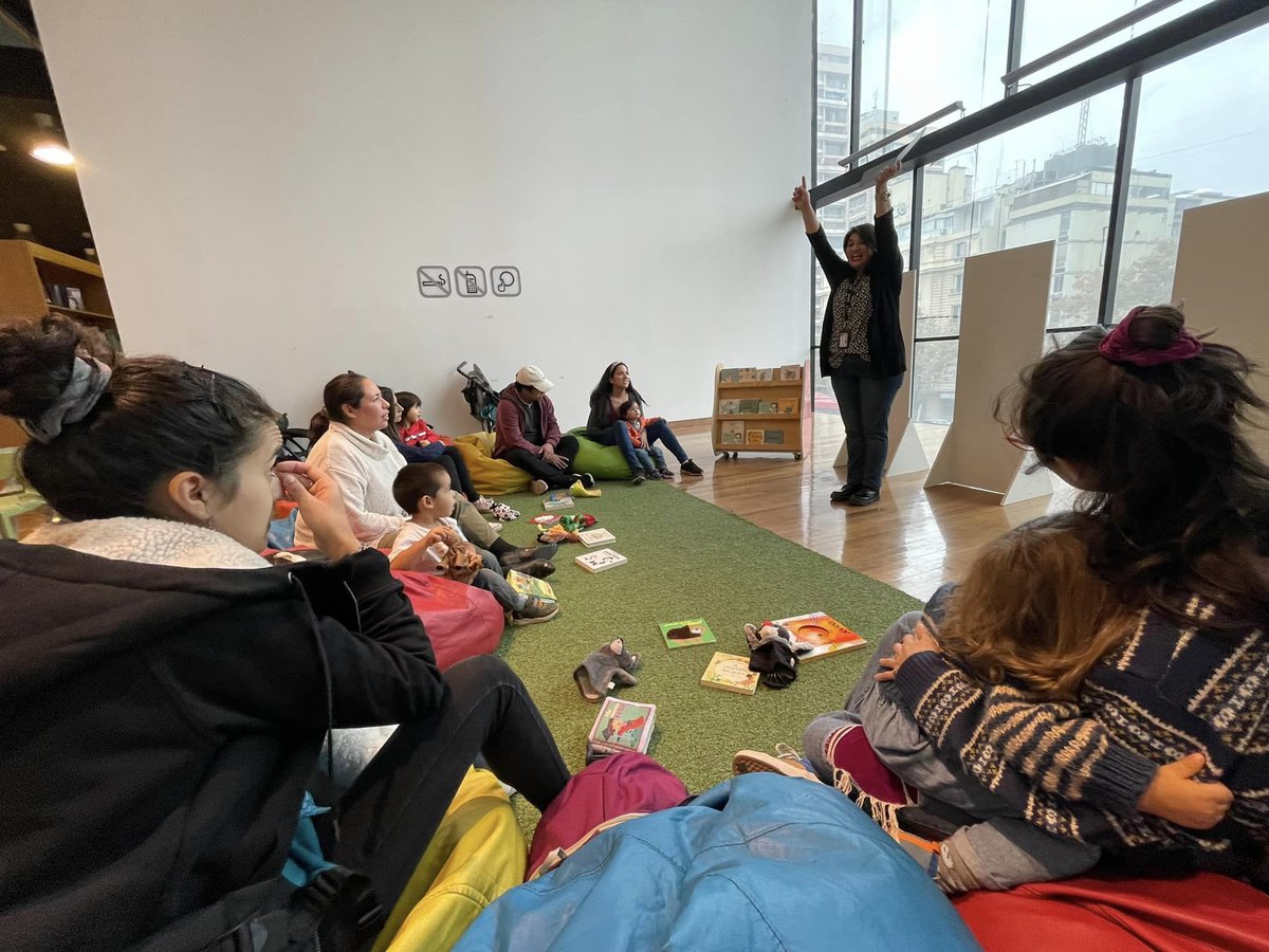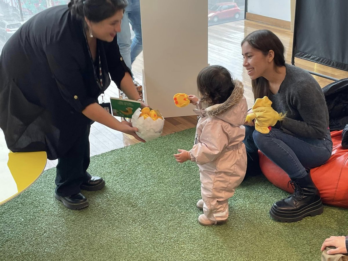 Taller de cuentacuentos para la primera infancia en presencial con lecturas, canciones y adivinanzas para que guaguas, niños y niñas menores de 3 años disfruten junto a sus familias.