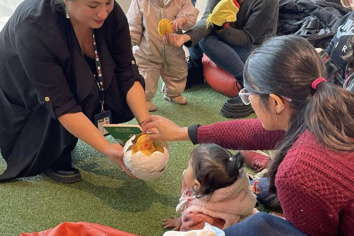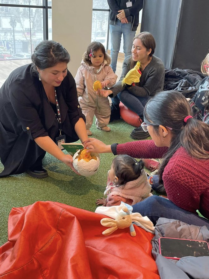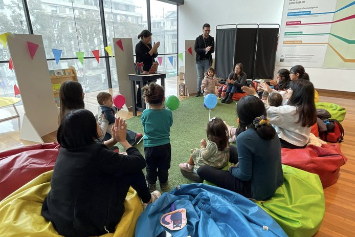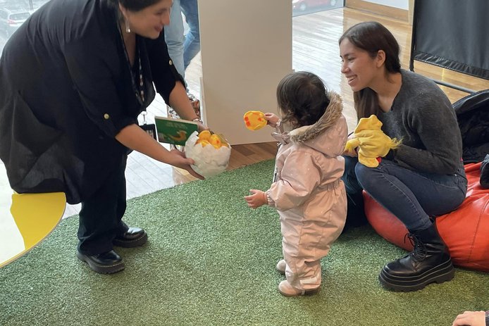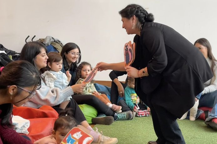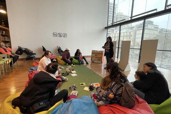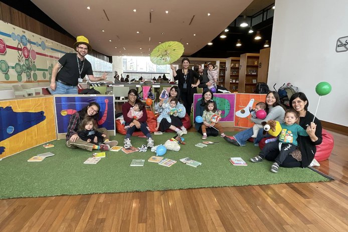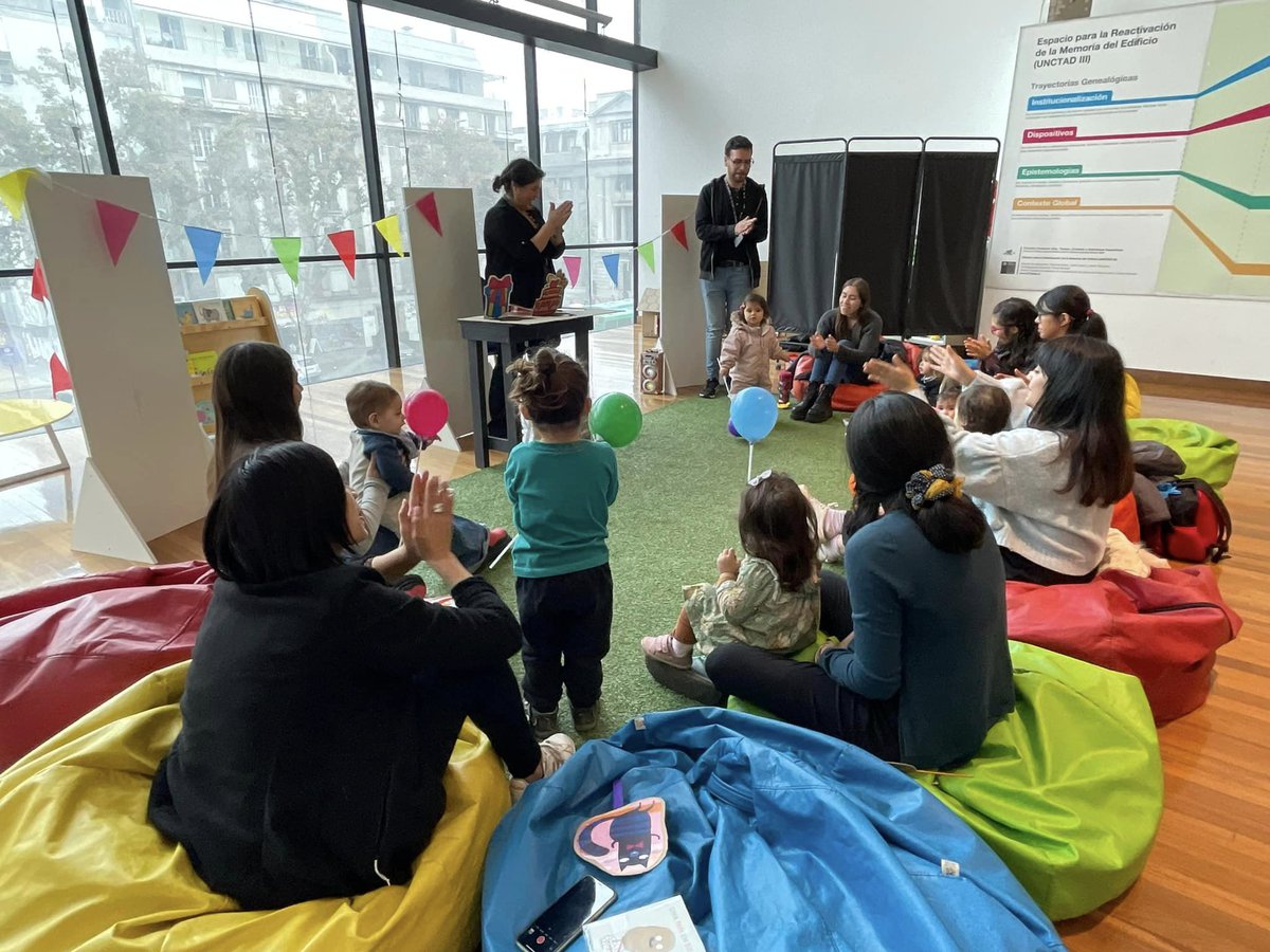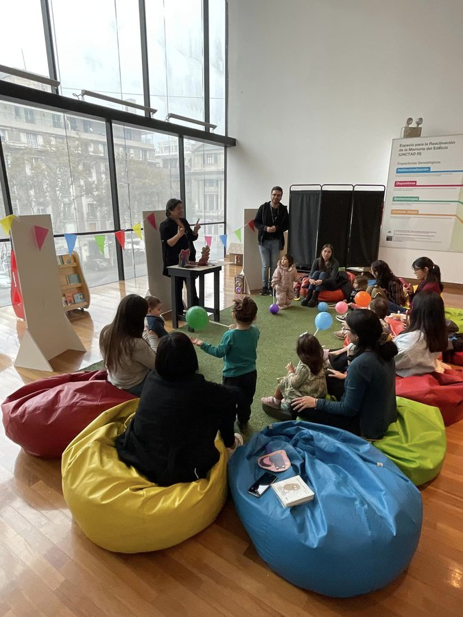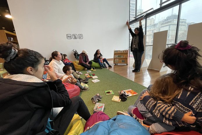 Taller de cuentacuentos para la primera infancia en presencial con lecturas, canciones y adivinanzas para que guaguas, niños y niñas menores de 3 años disfruten junto a sus familias.