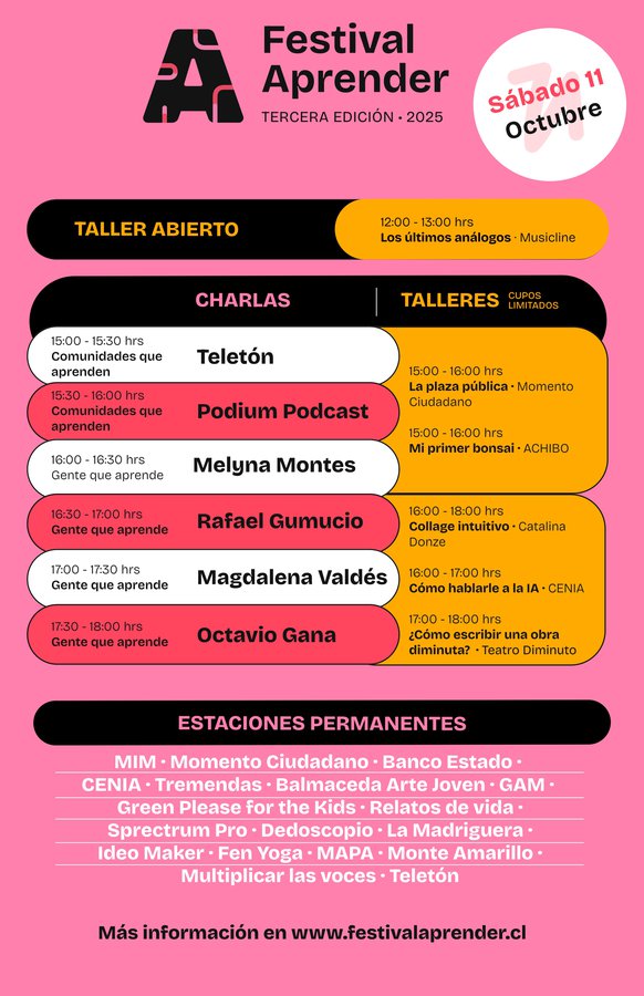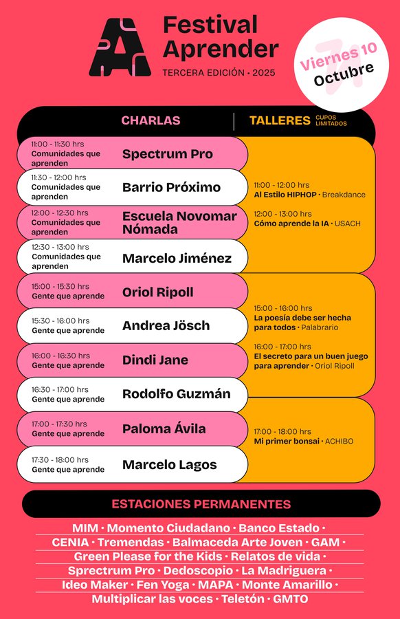 Organizado por la Fundación Red Aprender y con el apoyo de GAM, este festival se presenta como una invitación profunda a repensar la educación, aprender desde distintos territorios y celebrar el placer de descubrir y crear juntos.