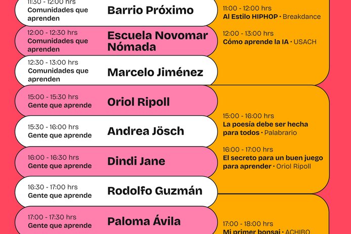Artistas, científicos, educadores y otros referentes compartirán sus procesos de aprendizaje mediante charlas; mientras los asistentes tendrán la oportunidad de acercarse, reflexionar y contrastar su propia forma de aprender.