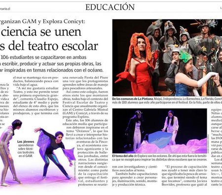 El encuentro, organizado de forma conjunta por CONICYT, a través de su Programa Explora, y el Centro Gabriela Mistral, GAM, busca fomentar el aprendizaje de las ciencias, por medio de lenguajes propios de las artes escénicas en estudiantes de Enseñanza Media de la Región Metropolitana.