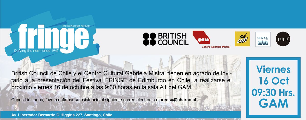 El encuentro con artistas y referentes de la industria del arte, el teatro, la música y las artes escénicas locales, se presenta por primera vez en Chile, luego de reunir a más de 100 mil personas alrededor de más de 50 mil actuaciones en 300 puntos de Edimburgo.