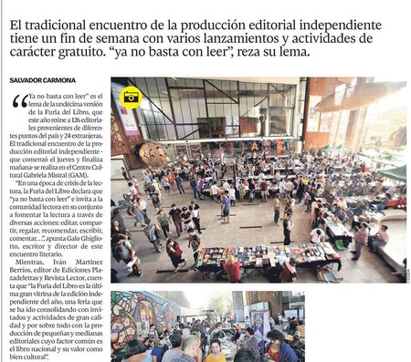 XI versión de la Furia del Libro que al igual que en sus ediciones anteriores tendrá como objetivo principal exhibir y vender libros de editoriales independientes, que publican diversos géneros como narrativa, poesía, ensayos, teatro, literatura infantil, comics, ilustración, fanzine, ciencias sociales, arquitectura, entre otros.