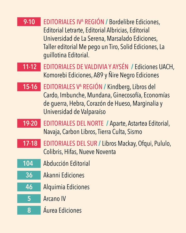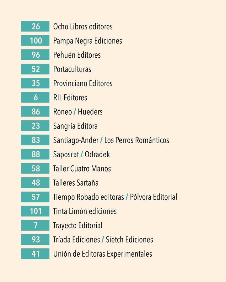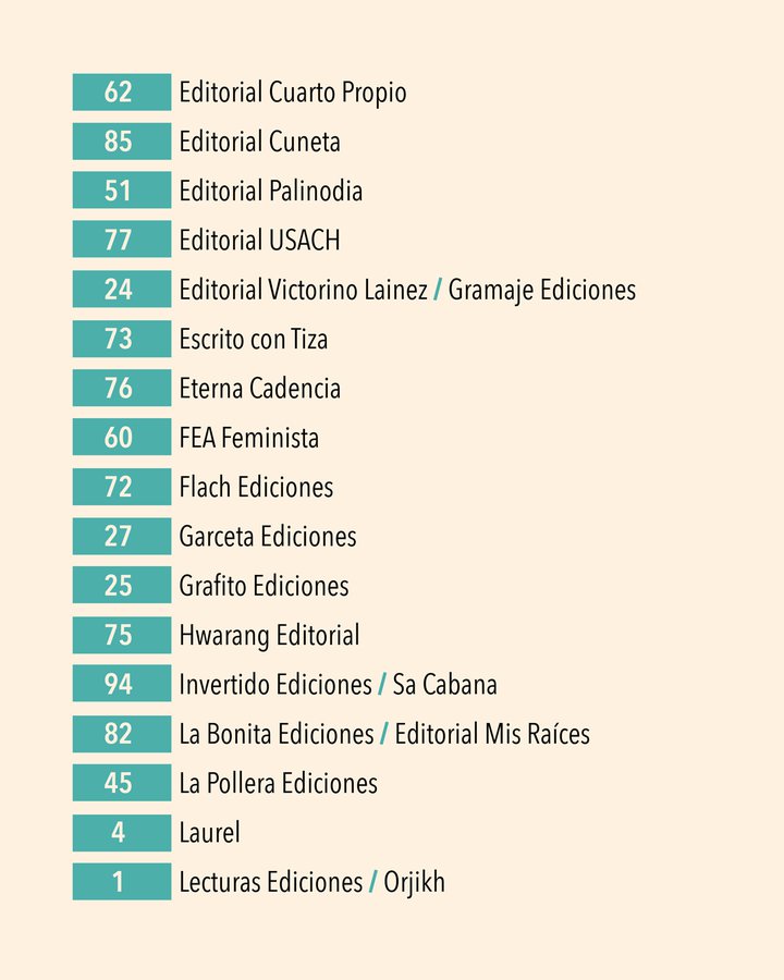 Este año, los y las asistentes podrán encontrar títulos de narrativa, poesía, ensayo, ciencias sociales, literatura infantil y juvenil, cómic, historia, entre otros géneros y temáticas que destacan en la industria editorial independiente chilena y latinoamericana.