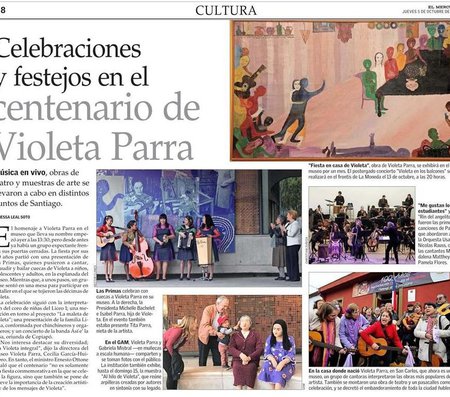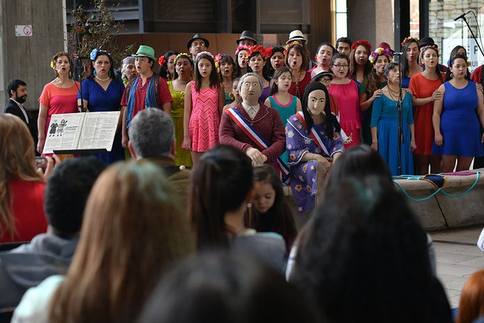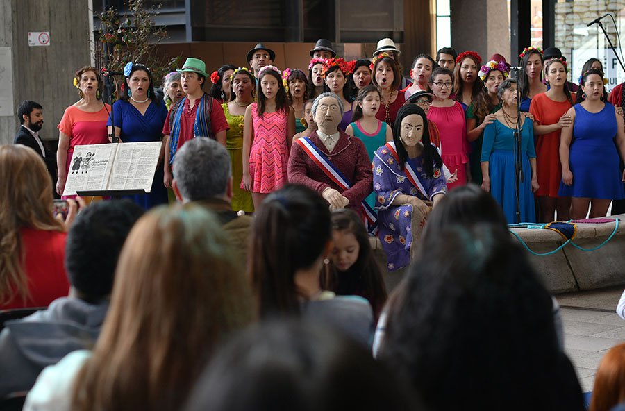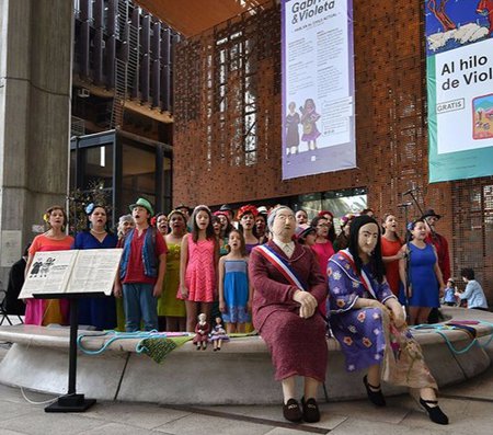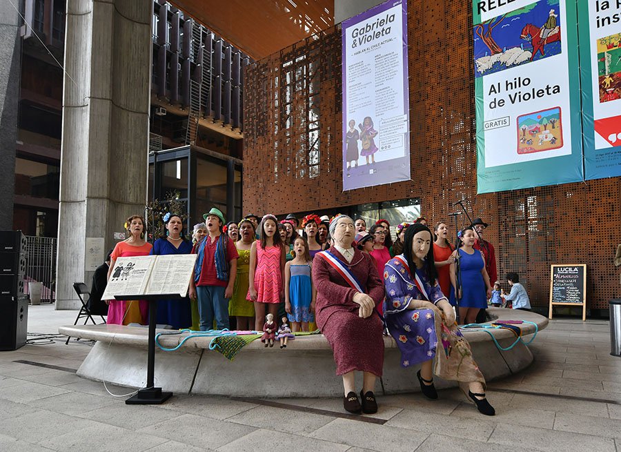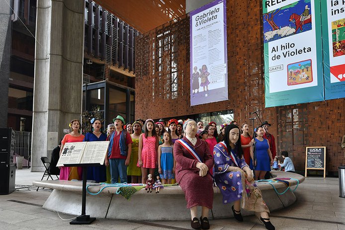 GAM celebra el centenario del nacimiento de Violeta Parra con una provocativa apuesta: inauguró dos muñecas a tamaño real de Violeta Parra y Gabriela Mistral. Pero hay más: la Premio Nobel y la cantautora en versión de lana, dan una entrevista a como candidatas presidenciales. En el acto, se presentó además un adelanto del espectáculo coral Violeta ciudadana obra de teatro musical de los hermanos Ibarra que se presentará en sala con cinco funciones esta misma semana.