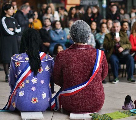 Para traer al Chile actual el mensaje de estas dos mujeres tan potentes, GAM las releva mediante dos muñecas de lana a tamaño real que representan a Gabriela Mistral y Violeta Parra. Ambas fueron presentadas este martes en GAM como una manera de homenajear a la cantautora en su centenario y hacerla dialogar con la Nobel de literatura.