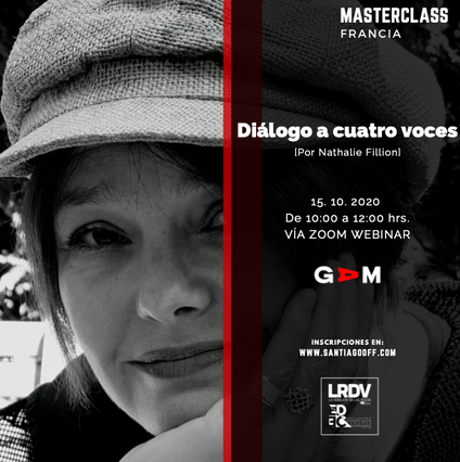 La dramaturga francesa Nathalie Fillion conversará con el poeta-traductor Pablo Fante, quien tradujo uno de sus textos (Alex Magno), Kevin Morizur y Nicolás Eyzaguirre de la compañía teatral chilena Contenedor.