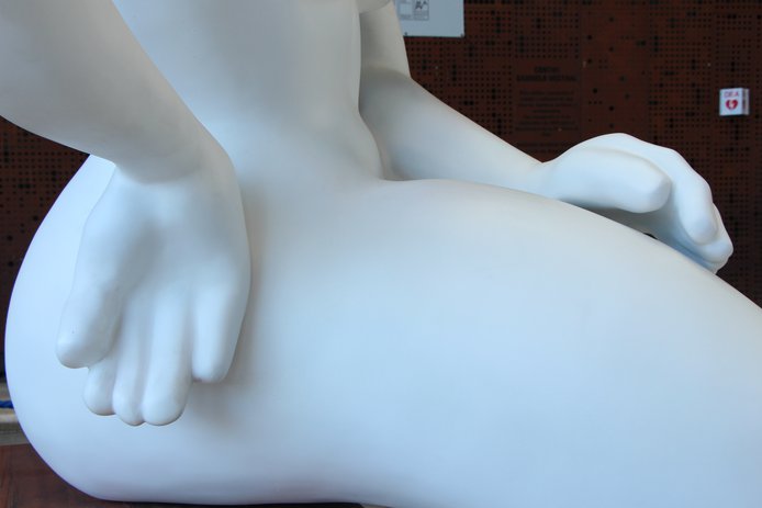 La sombra está compuesta por dos esculturas de gran escala, realizada por medio de dos piezas contrastadas en luz y sombra, una figura humana es blanca y la otra negra. La instalación invita a mirar partes de nosotros mismos (as) que nos hemos negado o nos cuesta observar y profundizar: vulnerabilidades, resistencias, limitaciones y bloqueos emocionales, entre otras.