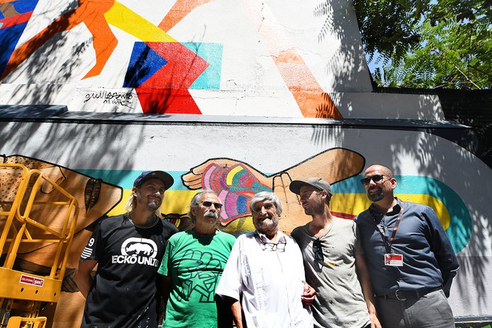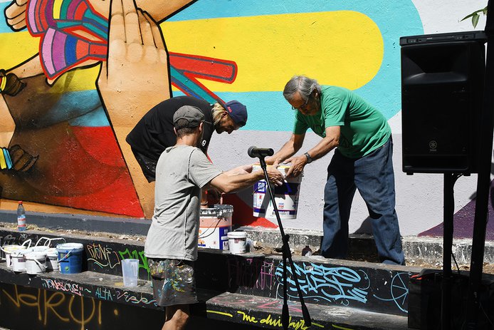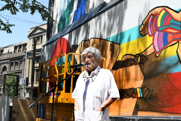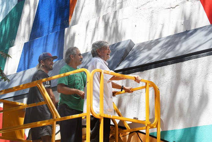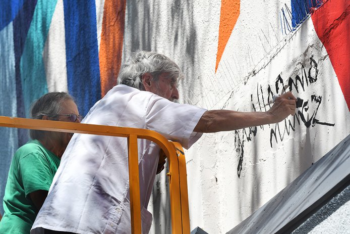 La obra original fue realizada por el artista visual Guillermo Núñez, en homenaje a los voluntarios que colaboraron en la Unidad Popular. Los graffiteros Saile y Matu, intervendrán con un trabajo colaborativo.