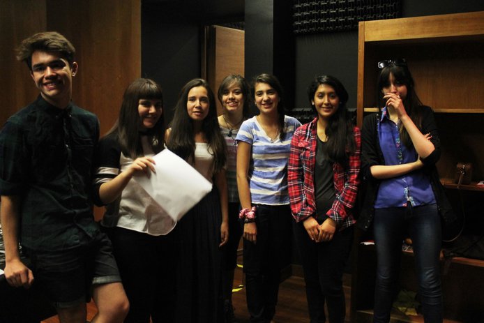 Sobre esto conversan, Consuelo Navarrete, Javiera Ojeda, Amanda Giovanini y Sofía Seccia participantes del del Taller de Periodismo 2015.