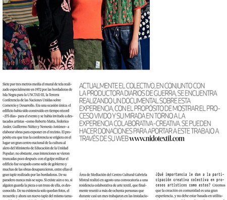 Una invitación a diseñar y construir colaborativamente una pieza textil de gran formato, inspirada en el trabajo que las Bordadoras de Isla Negra hicieron para el edificio de la UNCTAD III. Un taller inclusivo de creación y reflexión guiado por la cooperativa de oficios Nido Textil.