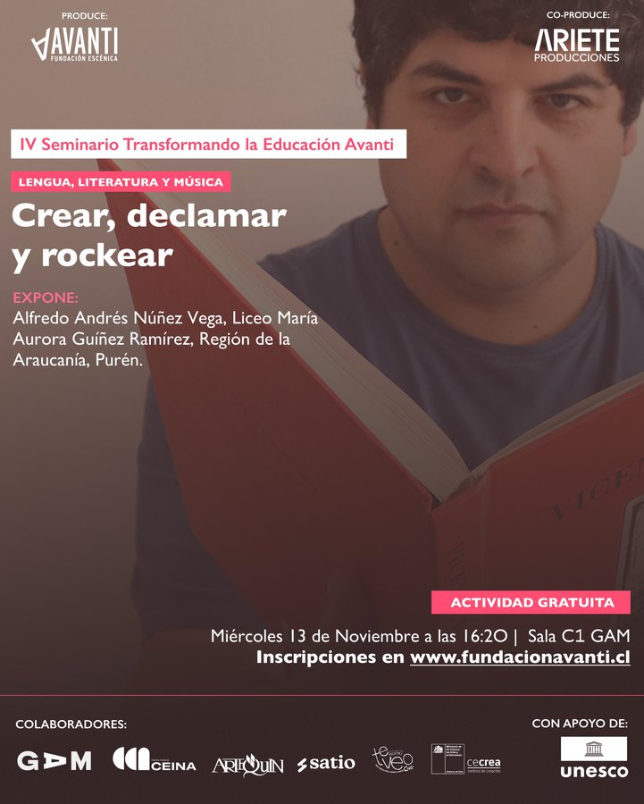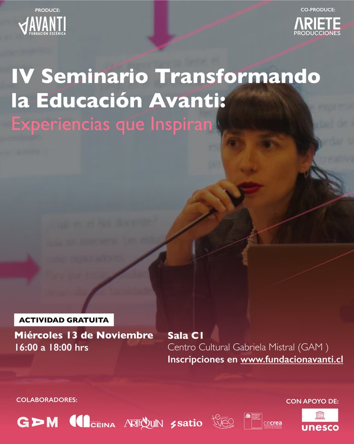 El IX Festival Interescolar de las Artes Juveniles, AVANTI, reunirá 87 trabajos artísticos de las áreas de teatro, música, danza, artes visuales y literatura, provenientes de 36 establecimientos educativos y 28 comunas del país. Los jóvenes participantes tendrán la oportunidad de exponer sus obras en GAM, viviendo una experiencia enriquecedora que los coloca como protagonistas de su propio proceso creativo.