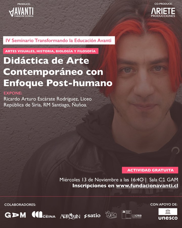 “Didáctica de Arte Contemporáneo con Enfoque Post-humano”, Ricardo Arturo Escárate Rodríguez, Liceo República de Siria, RM Santiago, Ñuñoa / ARTES VISUALES, HISTORIA, BIOLOGÍA Y FILOSOFÍA. |