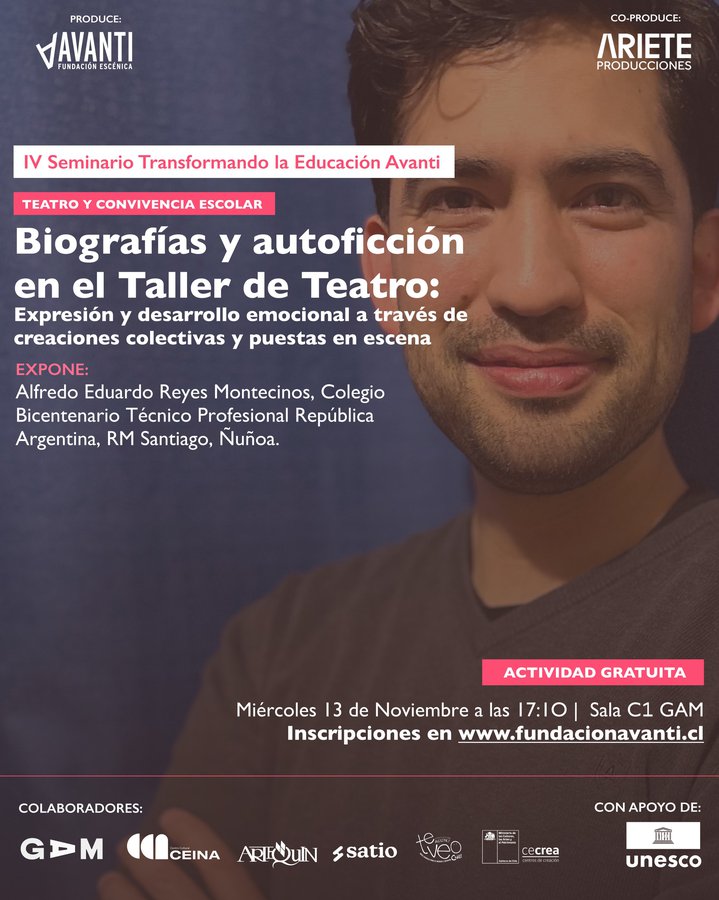 “Biografías y autoficción en el Taller de Teatro: expresión y desarrollo emocional a través de creaciones colectivas y puestas en escena“, Alfredo Eduardo Reyes Montecinos, Colegio Bicentenario Técnico Profesional República Argentina, RM Santiago, Ñuñoa / TEATRO Y CONVIVENCIA ESCOLAR |