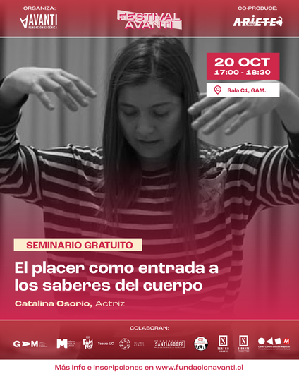 Imparte Catalina Osorio, Actriz. Las enseñanzas en las escuelas de teatro entienden que el cuerpo es un agente cognoscitivo, y con esto, se aborda la práctica como investigación como una metodología de enseñanza y creación. ¿Qué experiencias de aprendizajes creamos en esas prácticas? ¿Qué nociones de cuerpo subyacen en nuestras metodologías y didácticas? El placer se propone como una posible entrada a dichas prácticas corporales -específicamente la vocal para las artes escénicas- y como un elemento fundamental para re-pensar nuestra relación con el cuerpo y sus saberes.