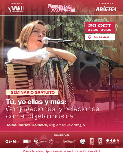 Imparte Tania Ibáñez, Magíster en Musicología ¿Qué enseñamos y por qué? ¿Qué criterios guían nuestras decisiones didácticas? ¿Cómo es la relación intermusical e interpersonal entre quienes participan de la experiencia pedagógica? Son algunas de las preguntas que levantarán la reflexión en esta charla. Para esto, se revisarán algunas ideas respecto del hacer musical en espacios pedagógicos, desde una mirada crítica que pone a la persona en el centro de la experiencia musical. Se revisarán algunas tensiones que surgen en la aparente oposición entre lo estético, lo bueno y lo necesario, desde una mirada como musicoterapeuta y educadora. Dirigida a profesores de enseñanza básica, docentes de educación musical y profesionales vinculados a la educación.