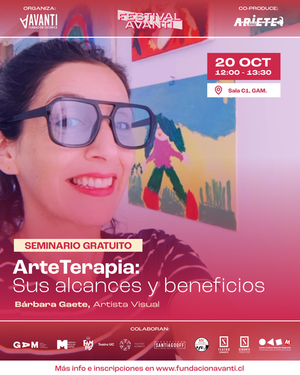 Imparte Bárbara Gaete, Artista Visual. El arteterapia es una forma concreta de ingreso del arte a la salud, a la orientación e integración escolar y permite, desde lo simbólico y creativo del arte, el trabajo comunitario. ¿Cómo el arte puede aportar a los distintos procesos de crisis? ¿Cómo el proceso creativo nos conecta con nuestro núcleo sano? Conocer algunos alcances y experiencias del arteterapia nos permitirá conocer sus beneficios y ver cómo facilita la integración de la vivencia humana.