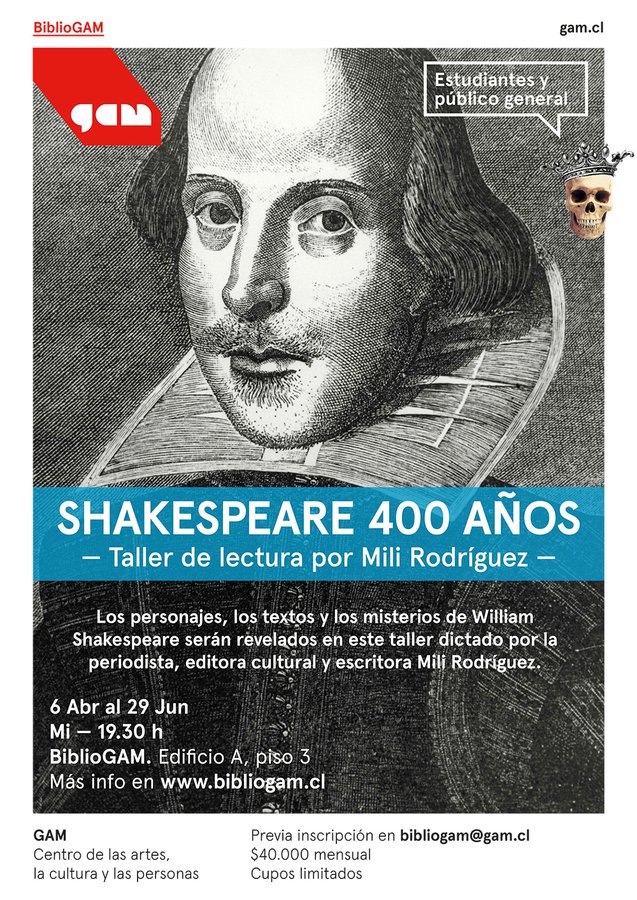 Los personajes, los textos y los misterios de William Shakespeare serán revelados en este taller dictado por la periodista, editora cultural y escritora Mili Rodríguez Villouta.