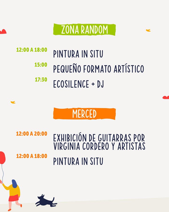 En Merced durante todo el día habrá exhibición de guitarras por Virginia Cordero y artistas y muestra de pinturas. Mientras que en los alrededores habrá stands de artesanía, diseño, gastronomía, productos locales y música ambiental.
