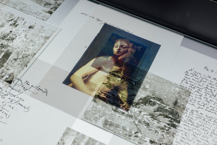 “En esta muestra el diálogo se convierte en una obra de arte: una invitación a los visitantes a interactuar con una instalación que toma vida en sus palabras no dichas y en los espacios entre las líneas de una carta abierta, dirigida a poetas revolucionarios, especies extintas glaciares y océanos antiguos”