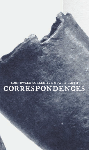 Correspondences, es un proyecto de Soundwalk Collective —compuesto por Stephan Crasneanscki y Simone Merli—y la cantante, escritora y artista visual, Patti Smith, que durante más de 10 años ha recorrido diversos y múltiples espacios y geografías, descubriendo las huellas sonoras de poetas, cineastas, revolucionarios, así como del impacto del cambio climático.
