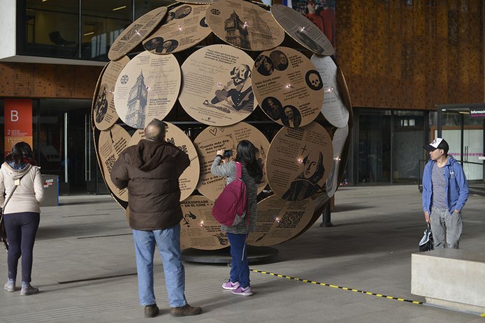 Son 46 circunferencias que componen un globo de 3 metros de ancho x 4 de alto y que contienen un recorrido educativo de la vida y obra del dramaturgo inglés, junto con datos curiosos.