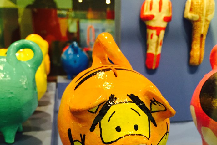 La muestra ofrece, al mismo tiempo, una mirada hacia el imaginario cotidiano, en el que conviven motivos tradicionales con otros de la cultura de masas expresados, por ejemplo, en comics o dibujos animados.