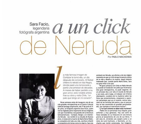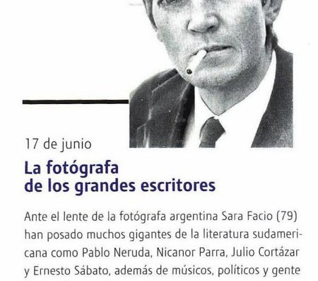Conocemos varias de sus fotografías de Pablo Neruda, y el retrato de Julio Cortázar con un cigarro equilibrándosele en los labios es la imagen más conocida del autor de Rayuela. Pero ante el lente de Sara Facio han posado otros muchos gigantes de la literatura sudamericana, además de músicos, políticos y gente de la calle que en sus fotos se ha vuelto inmortal.